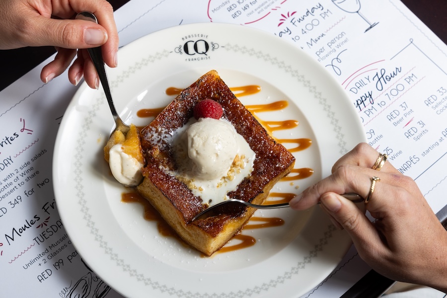 Experience the joy of French dining with CQ’s iconic Steak Frites, perfectly cooked and paired with a bottle of wine and a decadent dessert to share, all for just AED 369 for TWO.