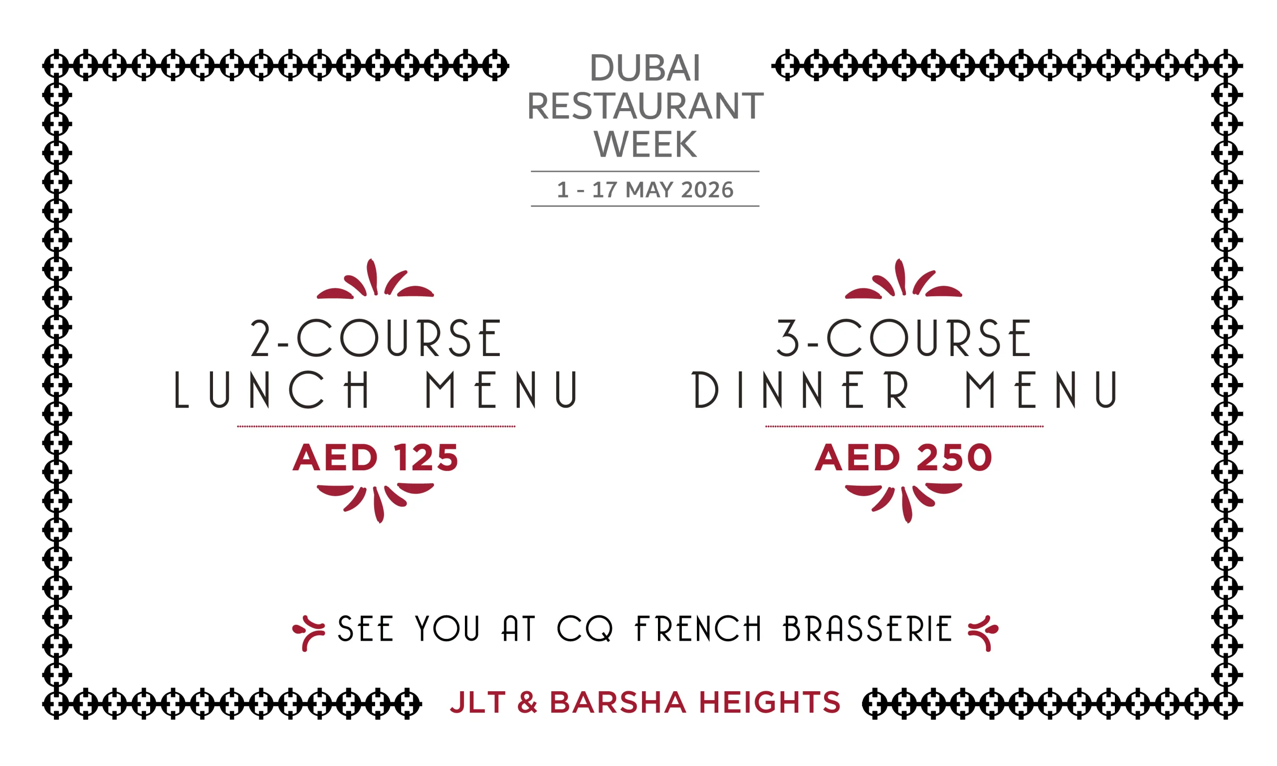 Experience the perfect blend of Parisian charm and the vibrant energy of the JLT community. Located in the iconic Mövenpick Hotel, CQ French Brasserie celebrates timeless French cuisine and heartfelt hospitality. The name CQ is inspired by "Le Coq," the iconic rooster that serves as a national emblem of France and a symbol of resiliance, prosperity and good luck.