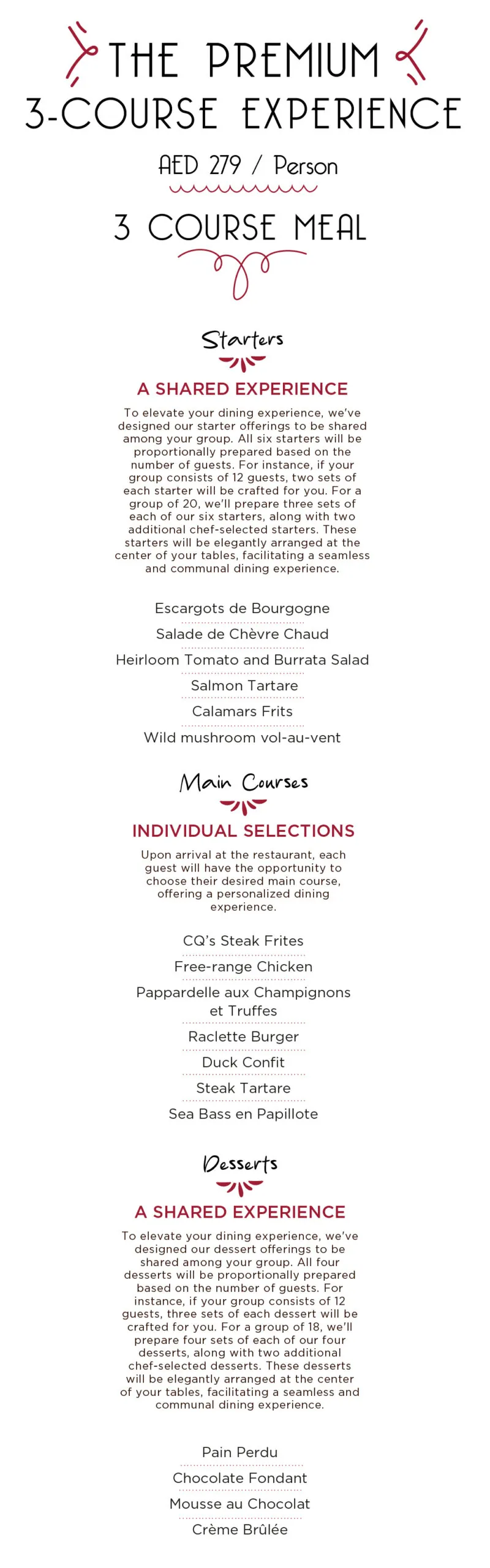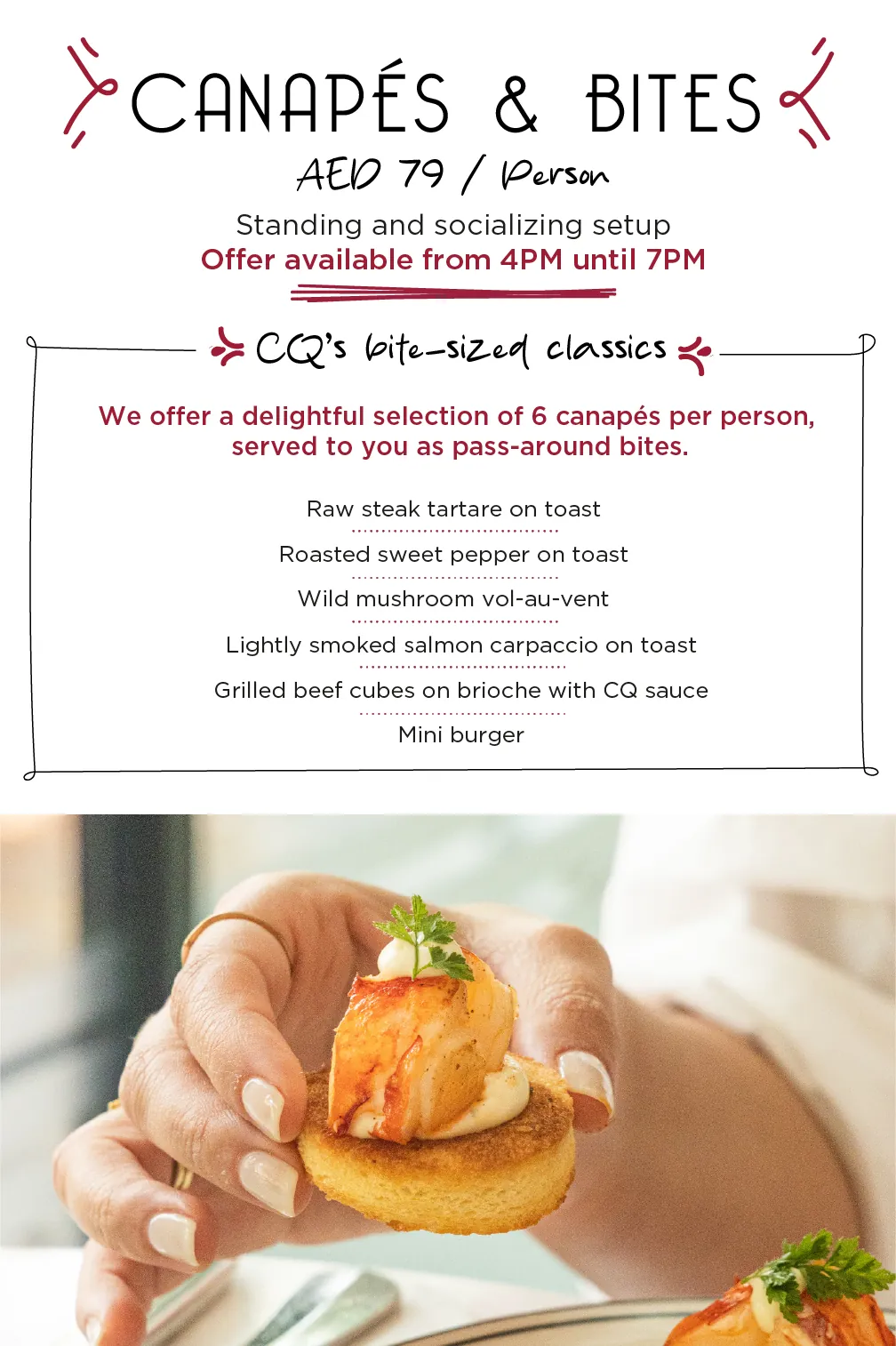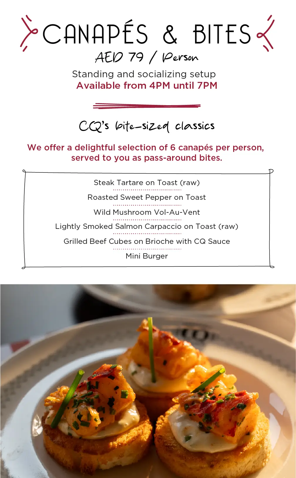 At CQ, no group is too small or too large—we’re ready to host gatherings of all sizes. From cozy celebrations of 10 to vibrant events for up to 150 guests, our flexible dining spaces and seating arrangements are designed to suit your needs perfectly.
