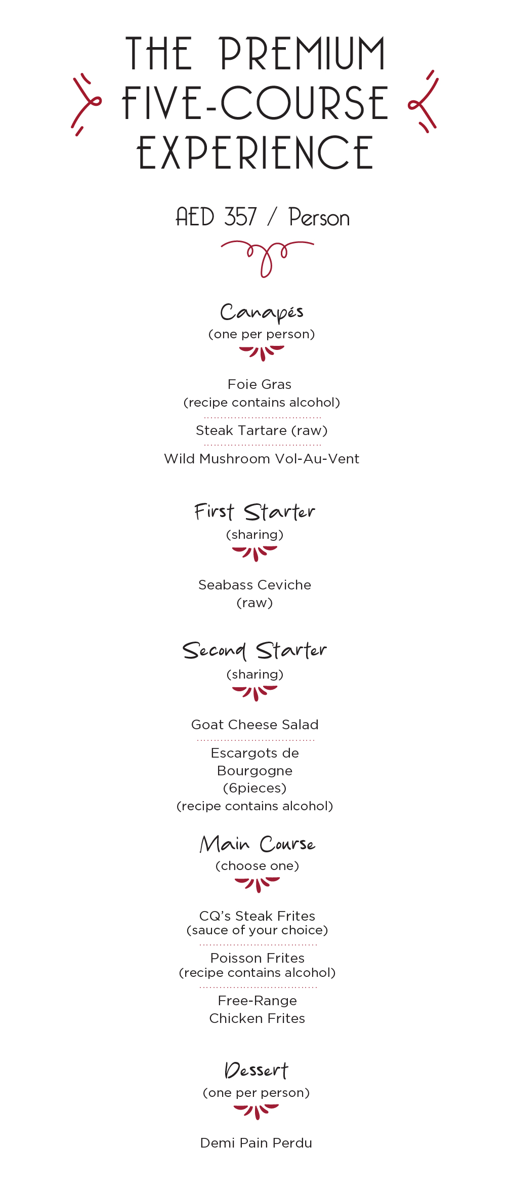At CQ French Brasserie, we understand that every group is unique, and that's why we offer a variety of customizable seating arrangements to suit your specific needs and preferences. From traditional round tables to more intimate lounge-style seating, we'll work with you to create the perfect layout for your event.